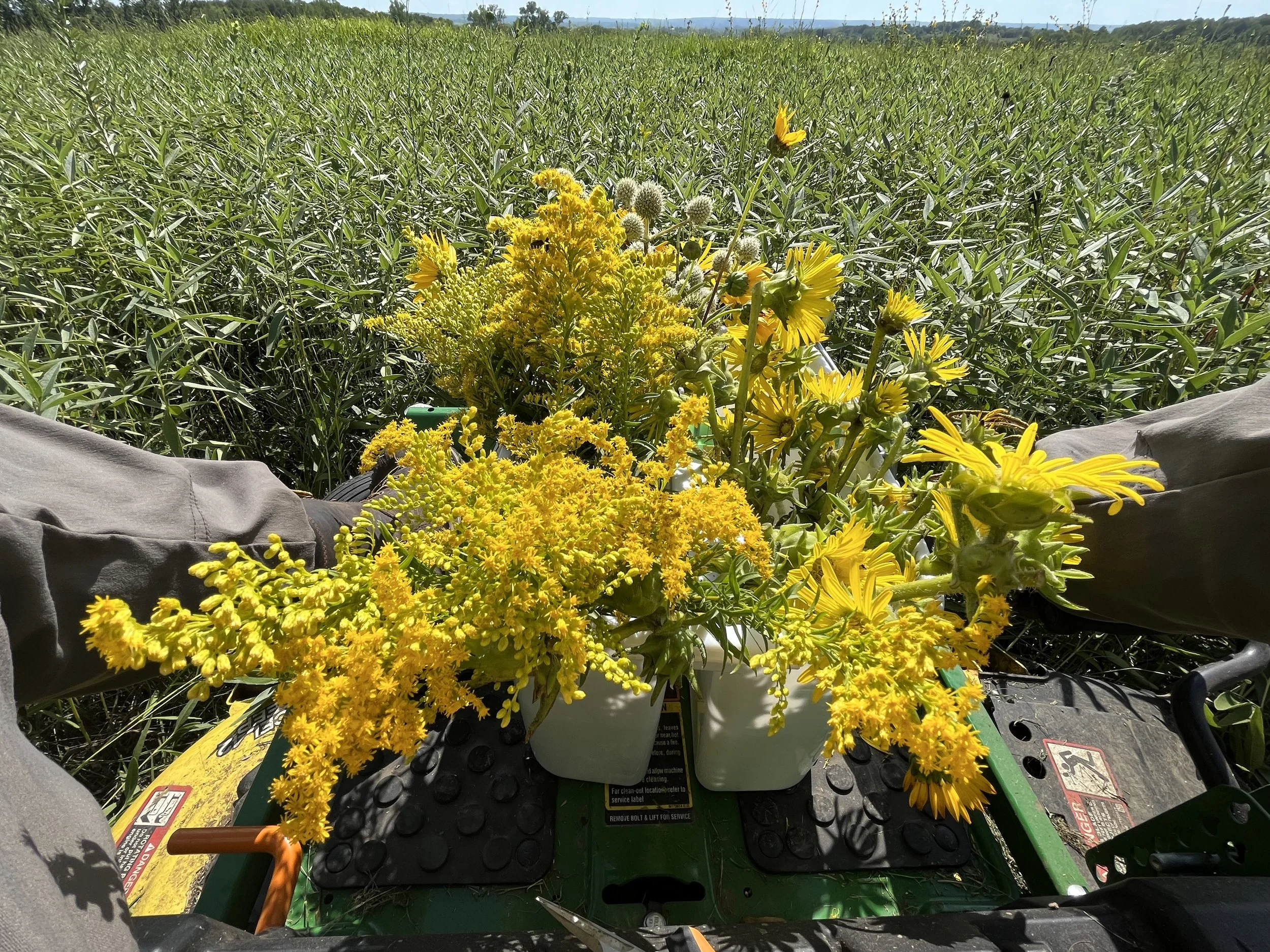 We hope you can come and enjoy the beauty of our remnant prairie and our cut flower garden with some creative additions.